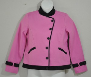 Bob Mackie Button Front Jacket W/ Faux Suede Contrast Trim Size S Pink/Black