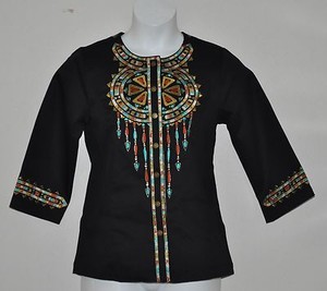 Bob Mackie Sz s Santa FE Dream Embroidered 3 4 Sleeve Jacket Black